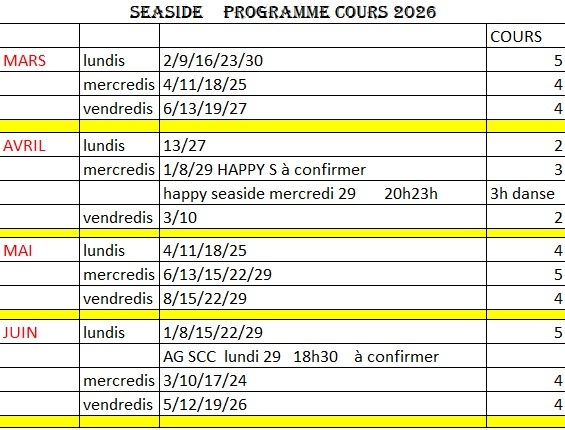 - cours soit la 1ere ou 2eme semaine des VS le mercredi salle lanerière pin rolland